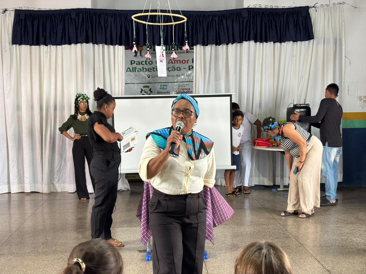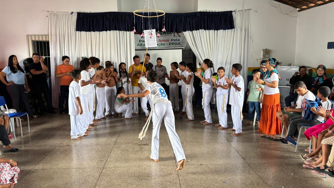 Em seguida, o público foi presenteado com belas apresentações conduzidas pelas professoras Dinena, Natália, Fernanda e pelo professor Pituíba, que enriqueceram ainda mais o momento com arte, conhecimento e sensibilidade.
