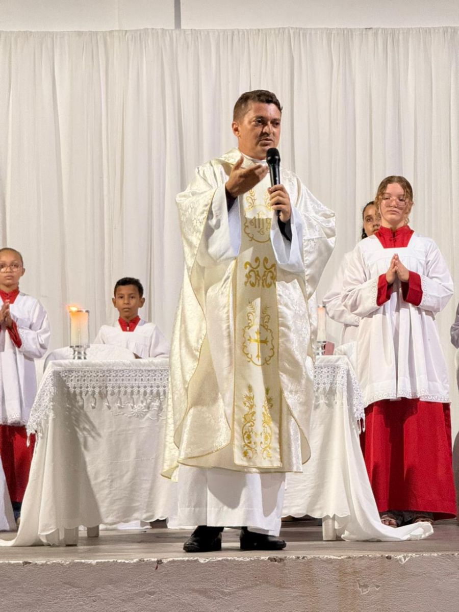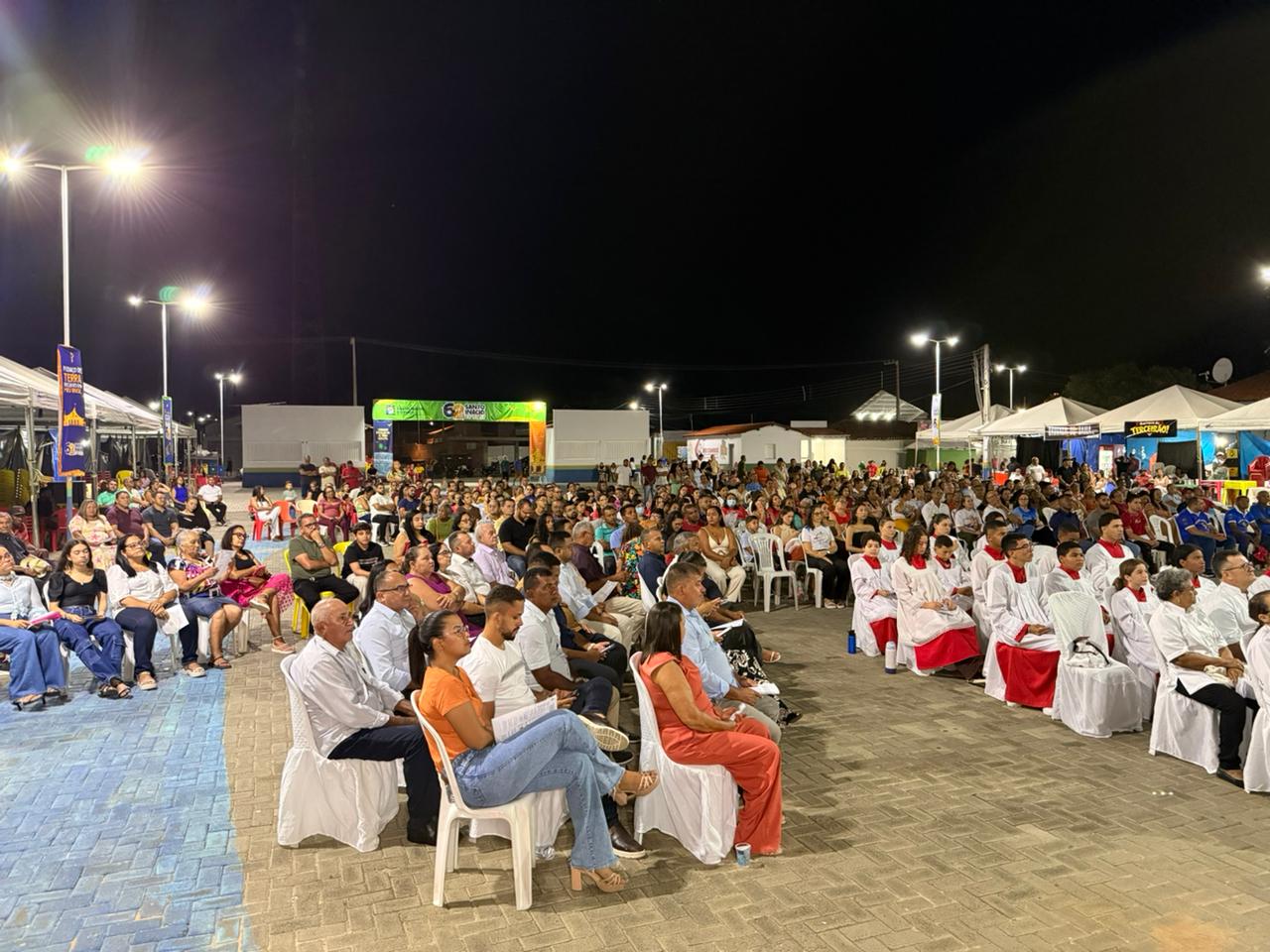 A cerimônia foi realizada na Praça de Eventos e reuniu autoridades, fiéis e a comunidade em um momento de fé, gratidão e reflexão pela trajetória e pelas conquistas da cidade ao longo dos anos.